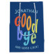 A colourful goodbye and good luck gift bag This modern typographic wrapping paper is the perfect way to say farewell in style to a friend or coworker. Personalize with a custom name.