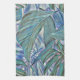 Watercolor Painting of few very large tropical leaves from tropical plants. The leaves are very different in shape and size, and the colours used in this watercolor are mostly shades of blues and greens. This design shows a rich, luxurious tropical foliage vegetation.