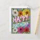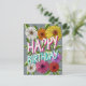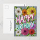 Colourful Grey Floral Personalized Happy Birthday Postcard