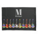 Unique colourful guitar pattern on black with grey personalized name and monogram pillow case. Delight your music lover guitarist and musician friends with detailed illustration of Electric guitars, acoustic guitars and semi acoustic guitars in funky psychedelic pop art bright colours. This multicolored guitar design celebrates the energy and variety of this wonderful musical instrument. Original artwork by artist Catherine Sweetman