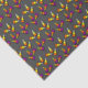 Tissue paper with a colourful Halloween candy corn pattern on a black background.