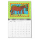 This colourful boho calendar features a variety of different bright, vibrant, whimsical cartoon drawings of Mexican style folk art animals by artist Debbie Hart. The creatures range from cats and dogs to deer, bunny rabbits, squirrels, horses and birds (crows or ravens). Each month features a different hand-drawn, hand-painted bohemian style watercolor animal on a coordinated brightly coloured background. Many of the animals have intricate, multicolored markings inspired by the bright patterns found on Oaxacan carved and painted folk art animal figurines, called alebrijes. Each painting is surrounded by a colourful Mexican style border, a great way to brighten up the walls of your home or office.