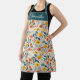 A vibrant summery hand-painted floral flower Personalized Apron. Design of yellow and pink flowers with bluey green foliage and red berries. Gives a lovely summery feel. A great Kitchen accessory to bring the outdoors in. Personalize with your choice of name.