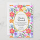 This unique invitation features a vibrant hand-drawn floral design in beautiful colours, with a stunning golden border to the white egg in the centre to signify the holiday.