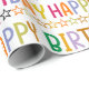 Colourful Happy Birthday Text and Stars Pattern Wrapping Paper