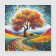 Landscape with beautiful happy tree in dot art style.