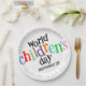 Celebrate World Children's Day with these commemorative paper plates, which feature the celebration "World Children's Day" in a colourful spectrum of playfully skewed letters, surrounded by wrapped text (the message for 2024) on the top and bottom.