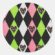 Colourful Harlequin Print with Rose Hearts Classic Round Sticker