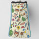 Colourful Hawaiian beach themed graphics on a pale yellow background, seamless repeat pattern