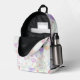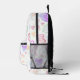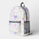 This fun backpack design features a colourful heart pattern over a white background with purple on the lower sides and bottom. A fun design for a gift to be used for back to school, diaper bag, picnics, the beach, travel and more.