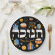 Colourful Hebrew Hanukkah Dreidel Menorah & Doughn Paper Plate