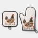 Colourful Hen Scandi Folk Art Oven Mitt & Pot Holder Set