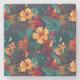 Colourful Hibiscus, Yellow Orange Green Floral Stone Coaster