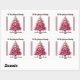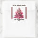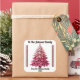 A vibrant sticker decorates a beautifully wrapped gift, set against a backdrop of festive greenery and holiday accents. The colourful design features a cheerful tree, adding a personal touch to the present. Ideal for spreading Christmas joy!