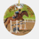 Beautiful ornament with a coloured pencil drawing of a horse and rider practicing their jumping skills on a colourful autumn day.