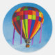 "Rise to the Day" is a colourful painting of a hot air balloon taking of in the morning. This colourful image was painted in the water media, gouache on canvas panel. The ballon is bright colours of yellow, orange, green, blue, purple, pink, and red. Stickers are the perfect final touch for cards, packaging, letters and treat bags.