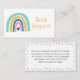 Colourful illustrated rainbow, baby shower book request card. Illustrated rainbow with dots and heart doodle accents.