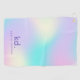 A simple minimalistic design featuring an iridescent background with blue, yellow, and pink tones and a customizable monogram.