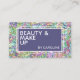 Beautiful modern and simple makeup artist business card with faux colourful shiny glimmering opaline iridescent marble look pattern and a cirsp white minimalist font. Click on 'Personalize' to find the template ready to be customized with your unique business name, profession and contact information, and text of your choice. This particular strong design was made for those who like simple but sophisticated classic designs.