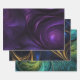These colourful swirl pattern designs were created by AI as it's interpretation of a fractal pattern in blue green, royal blue, gold and purple colours. Each has a somewhat iridescent quality as the lines move in and around the space in an organic, abstract pattern.