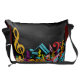 Colourful Jumbled Music Notes on Black Messenger Bag