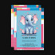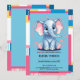 Adorable baby shower design featuring a cheerful blue elephant with playful pink ears, surrounded by bright patterns and jungle-inspired accents. Perfect for gender-neutral or baby boy celebrations. If you need any other matching product or customization, kindly message via Zazzle.