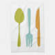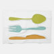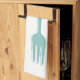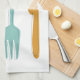 This retro kitchen towel, with it's kitchen utensils (fork, knife and spoon) in a combination of turquoise blue, avocado green, orange, and dark blue, will look fabulous hanging from your oven door.
