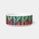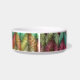 This is a heavy, durable bowl decorated with Tibbies of many colors, the perfect size for hungry/thirsty Tibs. The design is interesting and printing clear.