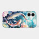 Phone case featuring a colourful painting of Japanese Koi fish. You can add your custom initials (optional, you can also delete the template).