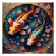 A Colourful Koi Fish is a detailed watercolor with expressive eyes is portrayed against a soft, blurred background. The natural colours enhance the lifelike appearance.