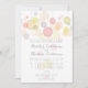 A wedding invitation featuring a colourful lanterns illustration and grey text.