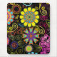 Colourful retro flowers and swirls on black background. Se more mousepad designs from ArtOnWear.