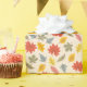 This design displays a charming and vibrant fall-themed pattern featuring a variety of colourful leaves. The background is a soft beige, allowing the leaves to stand out in hues of red, yellow, orange, green, and pale blue. The leaves are arranged in a playful and scattered manner, with each leaf type showing distinct shapes and veins, representing various species of trees. The overall design is lively and whimsical, capturing the essence of the autumn season with a touch of warmth and cheerfulness.