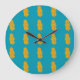 Colourful Leaf Pattern on Green Background Large Clock