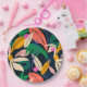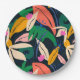Colourful leaf pattern, vibrant paper plate