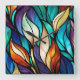 Colourful leaves in Stained Glass Look Square Wall Clock