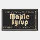 Edit your business name, address, volume of maple syrup, grade and contact info. Autumn sugar maple leaves on a black background with Maple Syrup written in modern font with a simple border.