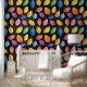 Colourful Leaves Pattern Chalk Drawings Black Bckg Decor. Solutions for the interior decor.