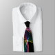 Here's a modern, bright and colourful abstract tie that will surely be noticed! A matrix of glowing light lines descend down the tie. Colours include blue, pink, yellow and white. The design is placed on a dramatic black background.