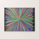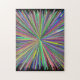 This vibrant puzzle design features a pattern of lines of different colours bursting outward from a single point.