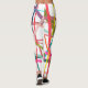 These leggings have a geometric design of scattered lines in floral colours – shades of pink, orange, yellow, blue, and green.