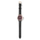 This women's watch has a mid-century modern design of sets of five coloured lines, alternately horizontal and vertical, repeating across the design on a black background. If you like the design but want different colours, message me.