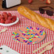 Great accent for an outdoor summer party. Bright colors, vibrant floral design