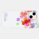 Pretty iPhone case done in white with graphics of colourful four leaf clovers, across the top. Personalize the custom text, for yourself or as a great gift idea for her.