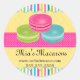 © 2020 Socialite Designs Inc. Whimsical and colourful macarons with polka-dot ribbon sticker design for sealing your bakery packages.