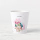 A latte mug with a delightful image. 3 colourful macarons, pink, green and blue with a fancy rose floral bouquet and a splash of pink watercolor. Delicious and stylish too!