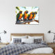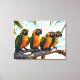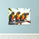 This is a beautiful parrots wildlife art design. Features four colourful macaw parrots on a tree limb with the ocean beach in background. It is on a stretched canvas wall art frame, ready to hang. Comes in many sizes. Great gift for that wildlife lover.