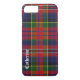 Great looking iPhone 7 case done in a traditional Scottish tartan plaid, in the colourful MacPherson family plaid. White old world style text running vertical up the left side is ready to personalize. Perfect way to protect your smart phone, and makes a great gift idea.