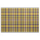 Custom fabric designed with Madras check pattern in shades of Saffron, Persian Indigo and Rose.
