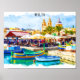 Colourful Watercolor Malta Mediterranean Poster featuring a panorama view of this popular travel destination. Great souvenir and gift idea for every tourist who enjoyed the vacation of this beautiful island.